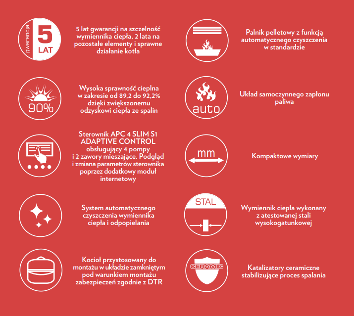 🔥 Układ samoczynnego zapłonu – zapewnia wygodę użytkowania i pełną automatyzację.