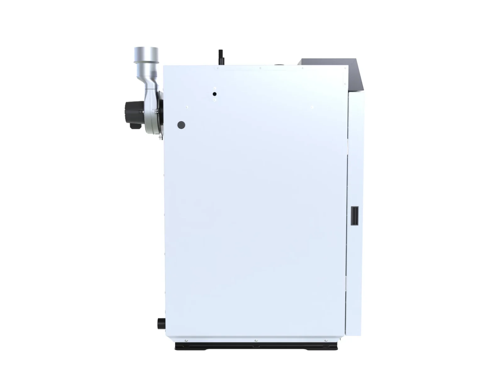 ✅ Wbudowany wentylator wyciągowy – zapewnia stabilność ciągu kominowego i eliminację cofania się dymu;