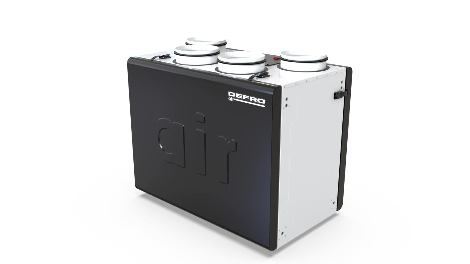 Rekuperator Defro DRO V jest dostarczany z konsolą montażową ścienną (2 szt. w zestawie) oraz dotykowym panelem sterującym, który umożliwia łatwe zarządzanie ustawieniami urządzenia.